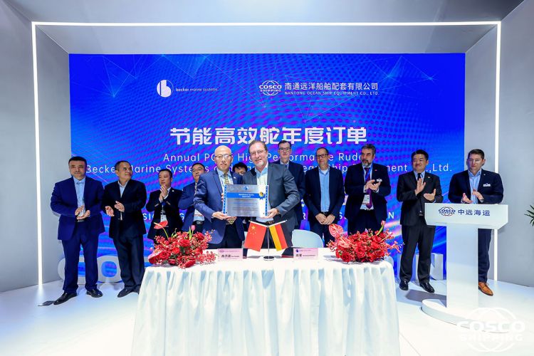Behind this successful cooperation lies more than seven years of collaboration between Cosco YP and Becker Marine Systems. The partnership started with four ship sets and now encompasses over 60 complete ship sets and over 40 trunk sets of high-efficiency rudder systems. Customers include major shipyards of the COSCO group, Hudong, Jiangnan, Waigaoqiao, DSIC, GSIC, New Yangzi Group, among others. „For Cosco YP, receiving this award is a great honor and recognition of our work,“ says Ran Hongbo, General Manager of Nantong Ocean Ship Equipment.