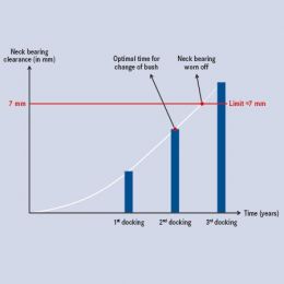 Continuous measurement of the neck bearing clearance by BBMS enables a precise prediction as to when the neck bearing bush will be worn off. Such information is vital to schedule the neck bearing replacement in line with the docking intervals, optimising rudder service timing, minimising maintenance costs and assuring operational safety.