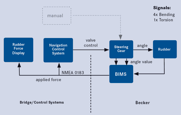 The Becker Intelligent Monitoring System (BIMS) is able to directly measure rudder forces and interface them with the ship’s navigation systems as well as visualise rudder lift on the bridge. Thus improving manoeuvrability and allowing energy-saving autopilot operation and more efficient dynamic positioning.