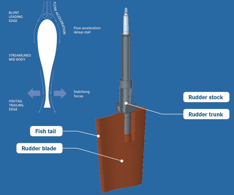 The Becker Schilling® Rudder is a high-lift rudder with a specially developed fishtail profile offering improved manoeuvrability for vessels of all sizes and types. With its special design the Becker Schilling® combines the highest lateral forces with the best course stability. The rudder forces optimised by the fishtail design guarantee improved safety and efficiency.