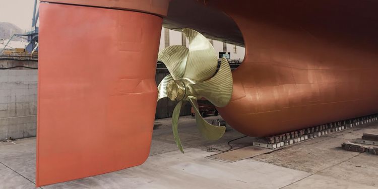 Above: Becker Twist Rudder as part of a Performance Packge with the energy-saving device Becker Mewis Duct® Twisted. (Seen in the background an installed Becker Mewis Duct®.)