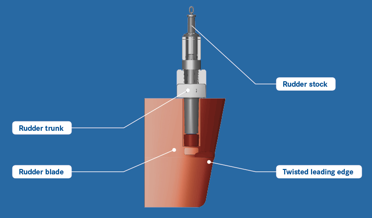 The Becker Twist design equalises pressure distribution on the rudder blades. To avoid cavitation and to improve the manoeuvrability performance of a full spade rudder, Becker Marine Systems has enhanced the development of the Becker Twist Rudder. With the Becker Twist Rudder solution cavitation and gap cavitation are prevented, resulting in lower servicing and maintenance costs. In addition, the Becker Twist Rudder reduces noise caused by cavitation.